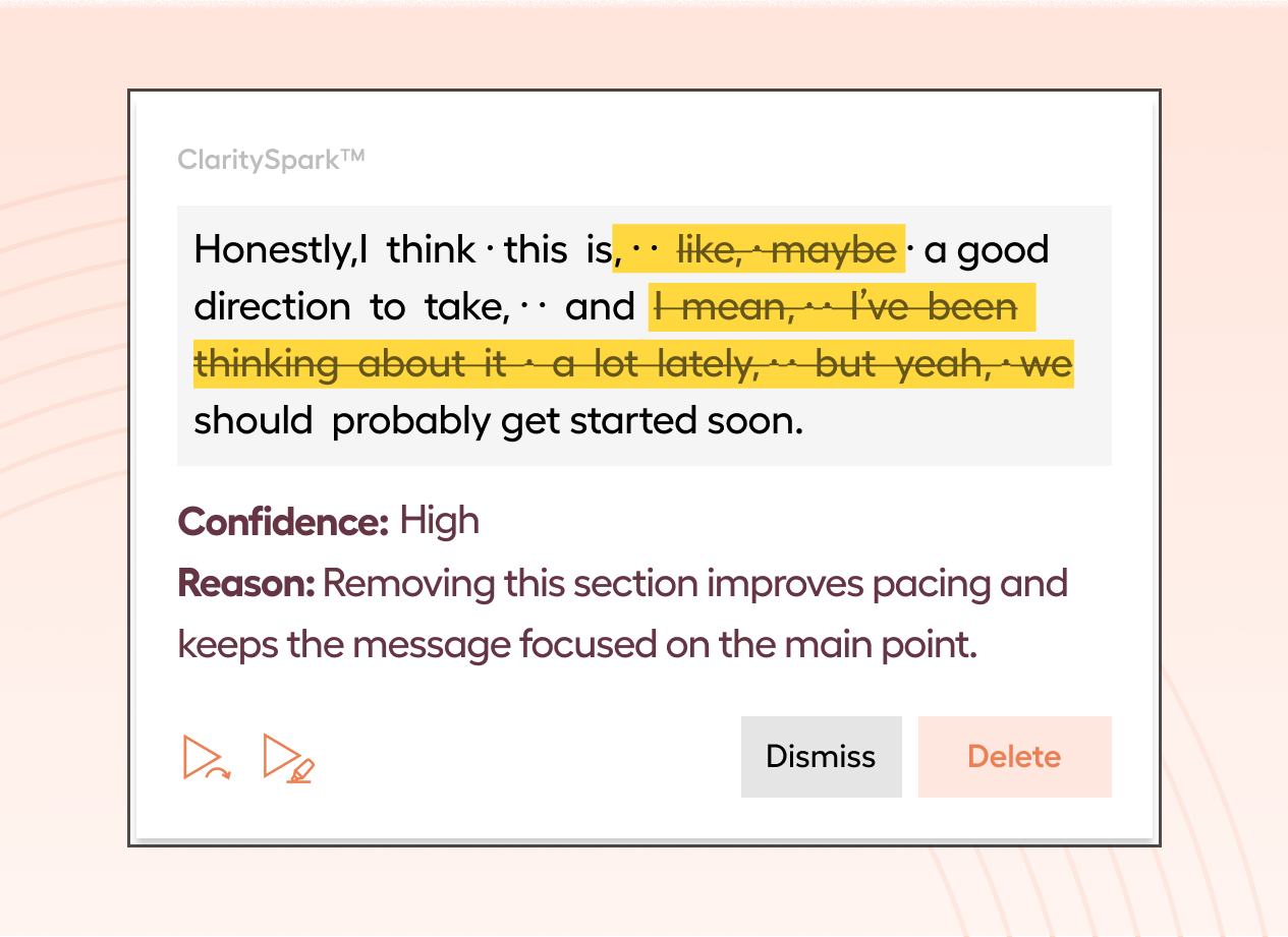 Automatically remove filler words, long pauses, and false starts—without learning editing tools or scrubbing through a timeline.